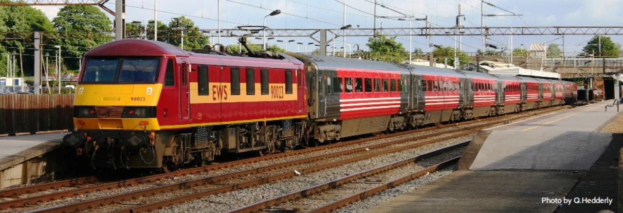 Welcome to the Class 90 Electric Loco Group website.This website was simplified and brought up to modern technological standards in late 2023. It has many features seen with its predecessor design, such as the reporting of daily gen, news articles, history and current fleet status. Unfortunately certain elements of the older design have been discontinued with this update, but similar functionality may be reinstated at some point in the future as the new website grows in size and as I grapple with the software program used to build the website. The website is dedicated to the British Rail (BR) built Class 90 electric locomotive, which were built and assembled in Crewe between 1985 and 1990. Please feel free to browse the many webpages of information that has been built up since the original website was first launched back in 2009 and continues as part of the updates in 2024 and beyond. Lastly, the layout, features, functionality, logo, website name, and design may change slightly as this new look website takes shape. I will add more quick links to make things easier to find in due course too. Unfortunately, the website is currently only compatible with desktop interfaces, but I shall see if there is a way making it compat-ible with other devices such as mobiles and tablets. However, this may involve extra work in the background to make this happen