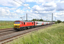 Welcome to the Class 90 Electric Loco Group website.This website was simplified and brought up to modern technological standards in late 2023. It has many features seen with its predecessor design, such as the reporting of daily gen, news articles, history and current fleet status. Unfortunately certain elements of the older design have been discontinued with this update, but similar functionality may be reinstated at some point in the future as the new website grows in size and as I grapple with the software program used to build the website. The website is dedicated to the British Rail (BR) built Class 90 electric locomotive, which were built and assembled in Crewe between 1985 and 1990. Please feel free to browse the many webpages of information that has been built up since the original website was first launched back in 2009 and continues as part of the updates in 2024 and beyond. Lastly, the layout, features, functionality, logo, website name, and design may change slightly as this new look website takes shape. I will add more quick links to make things easier to find in due course too. Unfortunately, the website is currently only compatible with desktop interfaces, but I shall see if there is a way making it compat-ible with other devices such as mobiles and tablets. However, this may involve extra work in the background to make this happen