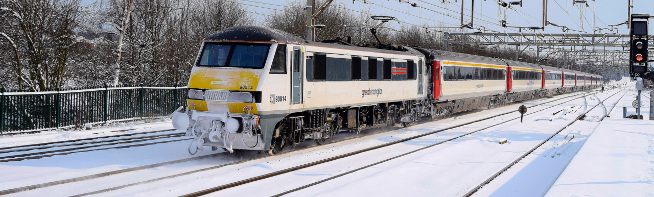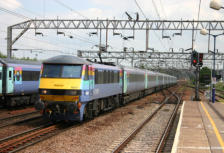 Welcome to the Class 90 Electric Loco Group website.This website was simplified and brought up to modern technological standards in late 2023. It has many features seen with its predecessor design, such as the reporting of daily gen, news articles, history and current fleet status. Unfortunately certain elements of the older design have been discontinued with this update, but similar functionality may be reinstated at some point in the future as the new website grows in size and as I grapple with the software program used to build the website. The website is dedicated to the British Rail (BR) built Class 90 electric locomotive, which were built and assembled in Crewe between 1985 and 1990. Please feel free to browse the many webpages of information that has been built up since the original website was first launched back in 2009 and continues as part of the updates in 2024 and beyond. Lastly, the layout, features, functionality, logo, website name, and design may change slightly as this new look website takes shape. I will add more quick links to make things easier to find in due course too. Unfortunately, the website is currently only compatible with desktop interfaces, but I shall see if there is a way making it compat-ible with other devices such as mobiles and tablets. However, this may involve extra work in the background to make this happen